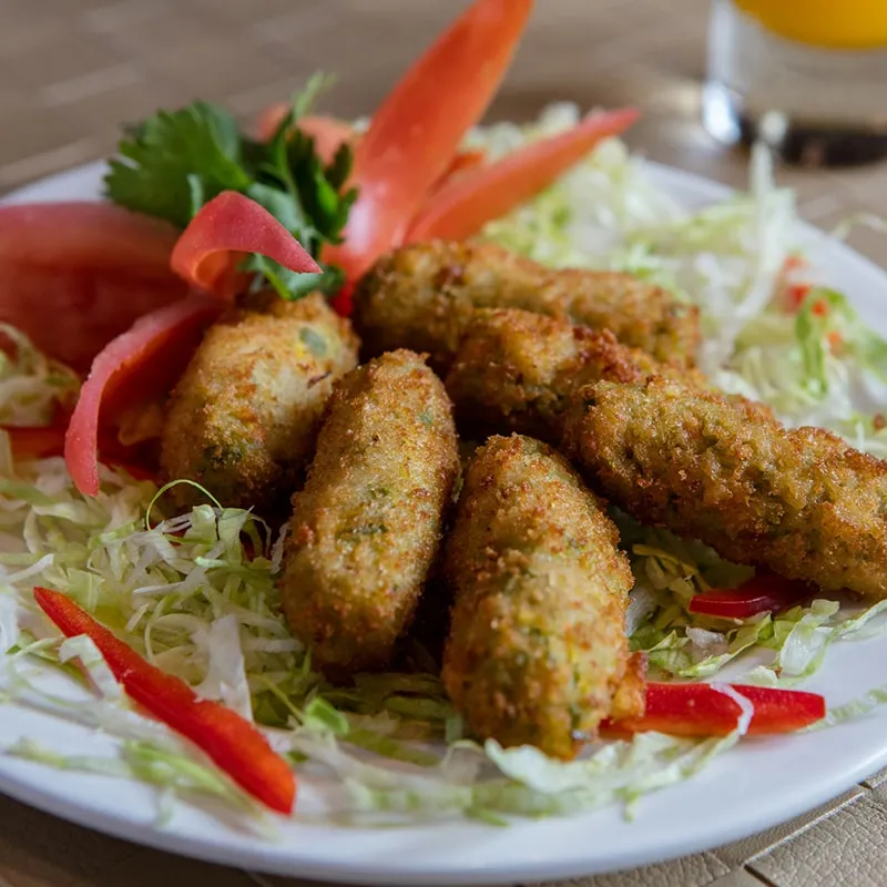(6 pcs),Fried mixed vegetable kebabs flavored with spices.