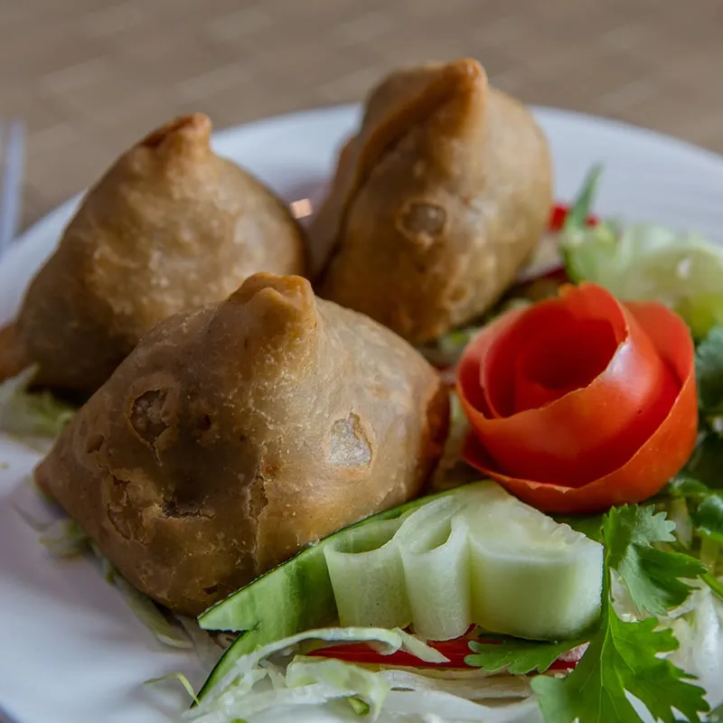 (3 pcs),Crisp puff pastry stuffed with lightly seasoned potatoes and green peas.