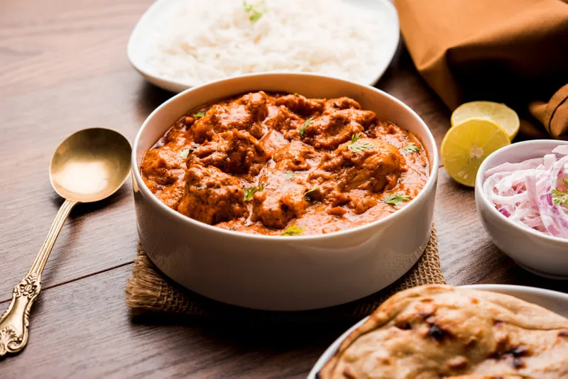 Fried scallops flavored with fresh coconut, lime, tomato, and ginger, served with naan and papad.