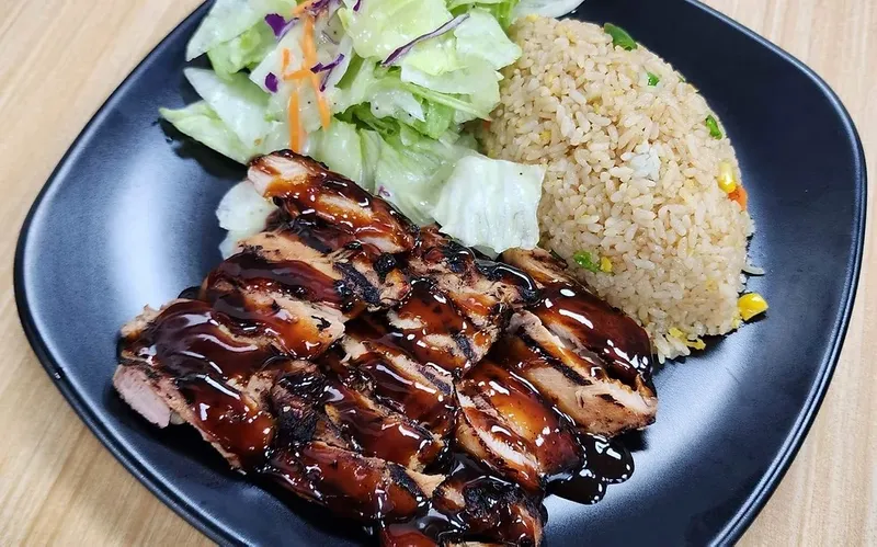 Served with Rice and Salad, one Spring Roll, and a Fountain Drink.