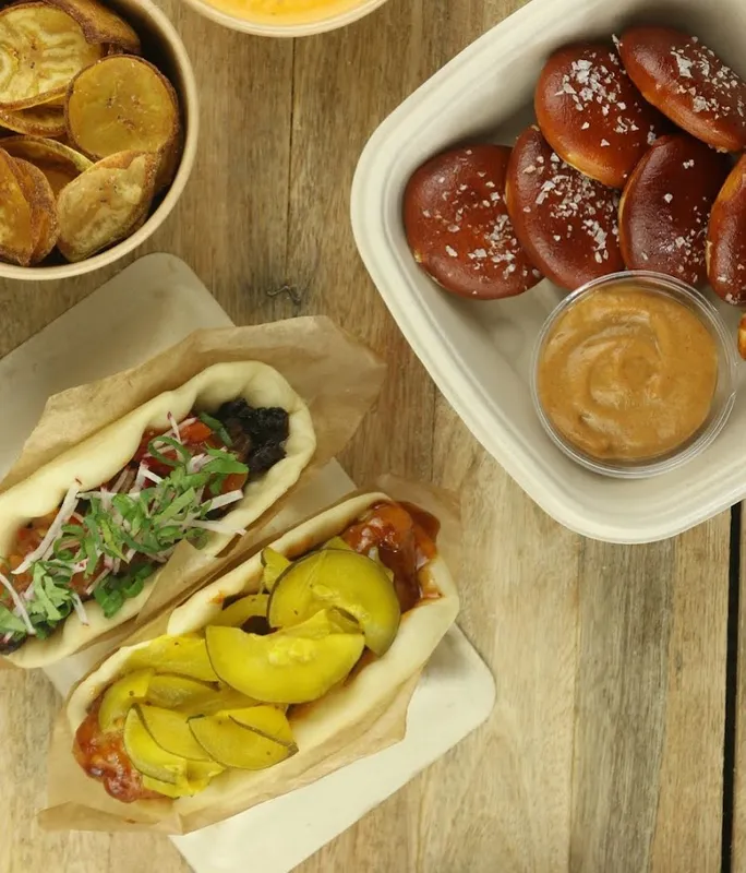 Chipotle sriracha sauce, kewpie mayo, zucchini bread n' butter, pickles.
