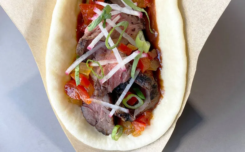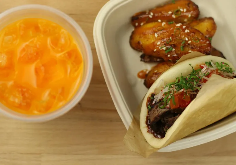 Tamarind sauce, orange, pickled daikon,red onion, cilantro.