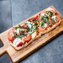 Freshly Baked And Topped With Diced Tomato And Served With Hummus