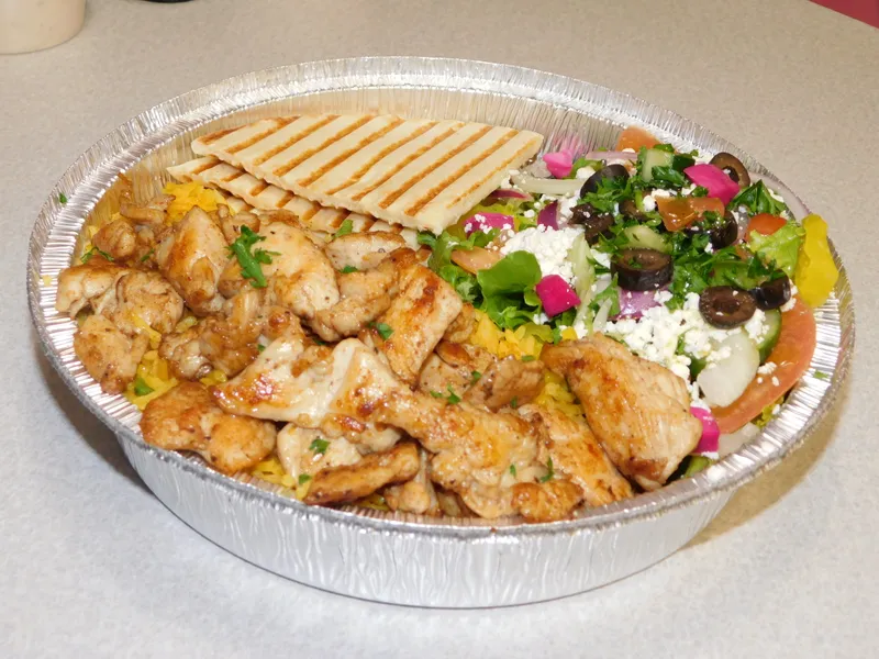 Lettuce, tomatoes, cucumbers, onions, black olives and Feta cheese. choice of dressing.