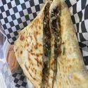 Tortilla de 12". Cilantro, cebolla, queso, aguacate, salsa y crema al lado. / 12" tortilla. Cilantro, onion, cheese, avocado, salsa and cream on side.