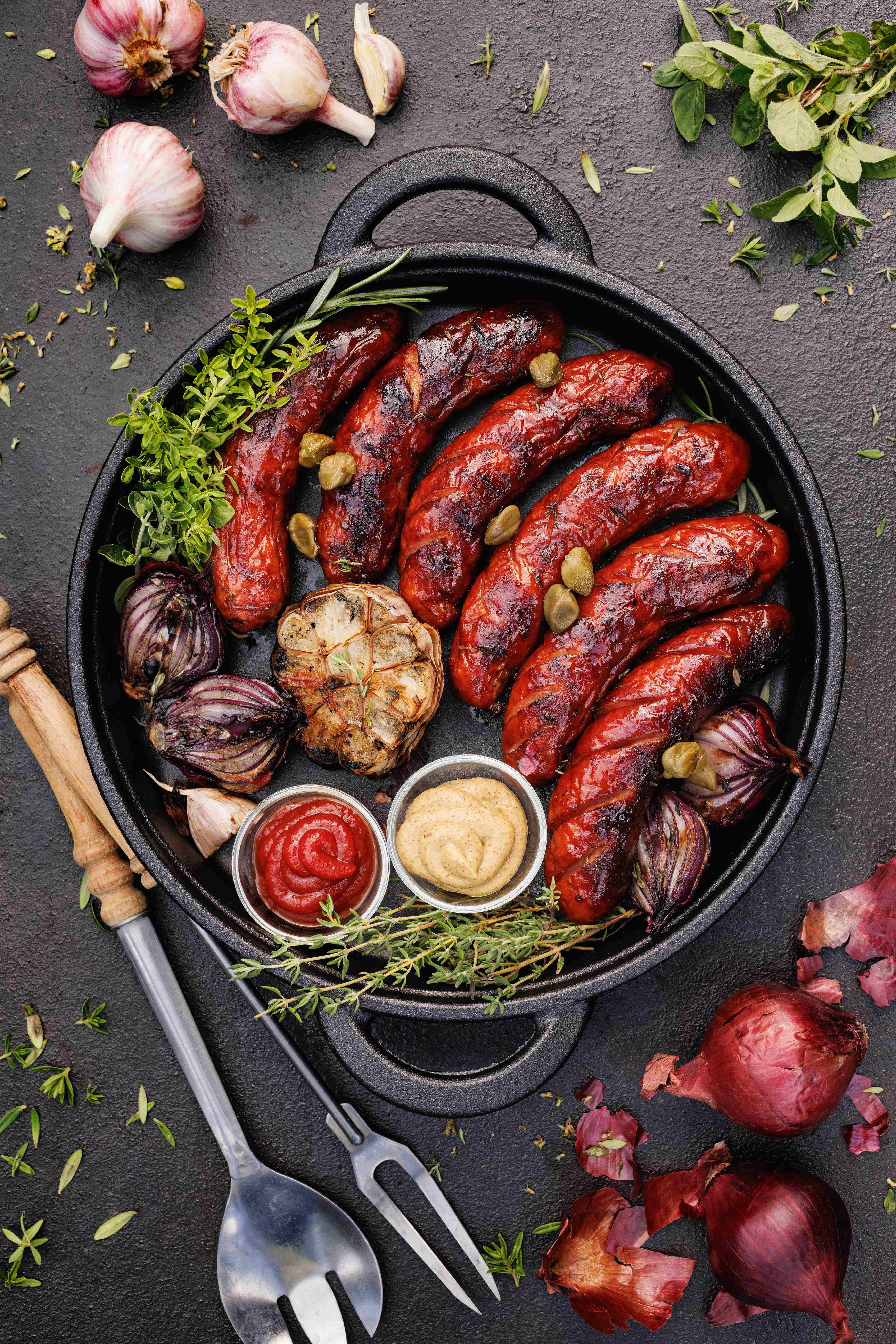 Five dumplings served with bacon and sauerkraut.